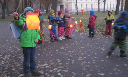 Ein herbstlicher Brauch, bei dem wir mit den Kindern nach Einbruch der Dunkelheit singend mit einer Laterne durch die Straßen ziehen oder durch den Park gehen.